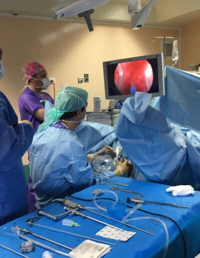 - Le traitement des prolapsus de la femme (cystocèle et rectocèle) par chirurgie robot-assistée ainsi que le traitement de l’incontinence urinaire féminine.